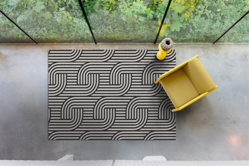 Het Retro Loop design combineert speelse geometrie met duidelijke retro-invloeden. De doorlopende, gebogen lijnen creëren een dynamisch patroon met een moderne knipoog naar de jaren ’70. De zwart-witte kleurstelling zorgt voor een tijdloze uitstraling die moeiteloos past in uiteenlopende interieurstijlen. Een krachtig, grafisch design met een eigentijdse twist. Daarnaast is dit design in iedere custom kleur te verkrijgen.