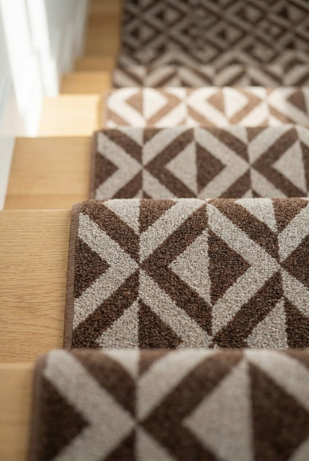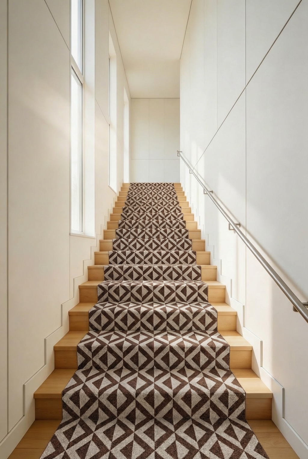 Met het gedurfde, grafische patroon van T&M Molveno breng je dynamiek en diepte in je ruimte. Statement design met krachtige lijnen. T&M Molveno is een traploper of loper op maat met een gedurfde uitstraling. Perfect voor moderne, creatieve interieurs. Val op met T&M Molveno: een krachtige grafische traploper of loper, volledig naar jouw smaak en maat gemaakt.