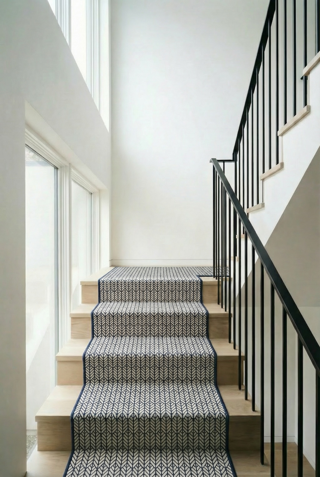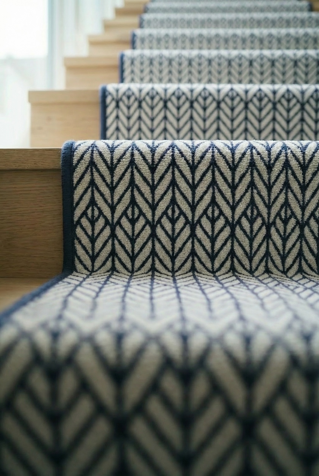 Toblino straalt luxe uit met zijn ritmisch art deco patroon. Deze traploper of loper brengt stijl, klasse en structuur in één ontwerp. Kies zelf de kleuren, afmetingen en afwerking – en creëer een ontwerp dat naadloos past bij jouw interieur.